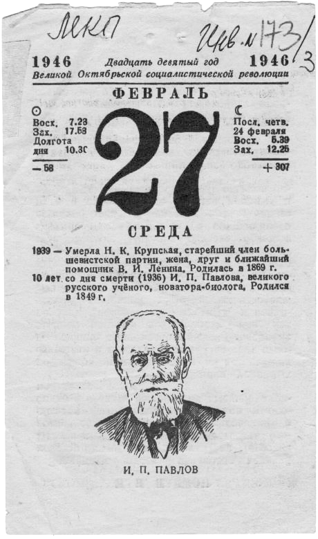 Листок отрывного календаря за 27.02.1946 г.