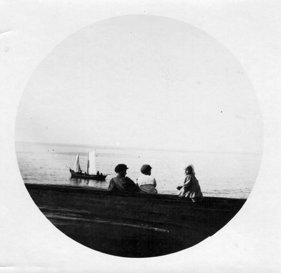 Фотография с изображением детей, сидящих на берегу. Год создания — неизвестен